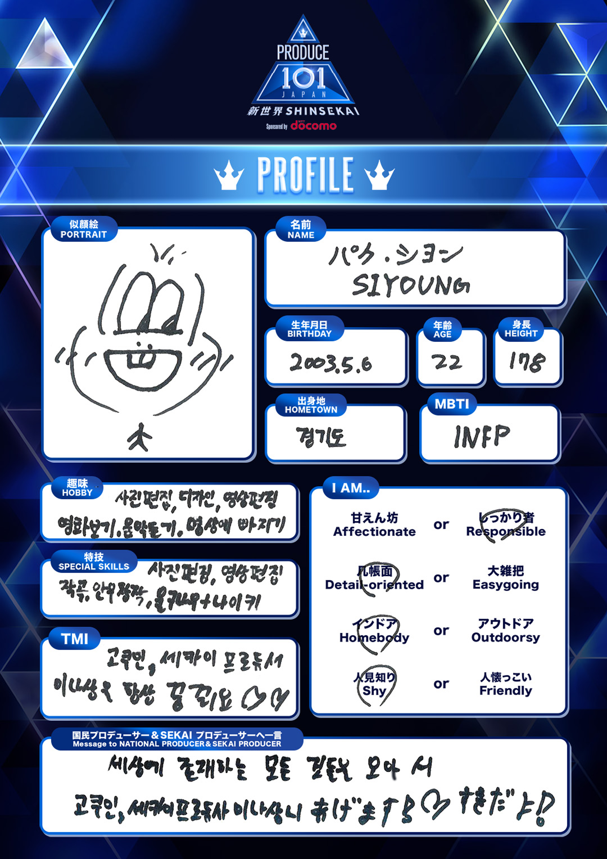 手書きプロフィールノート