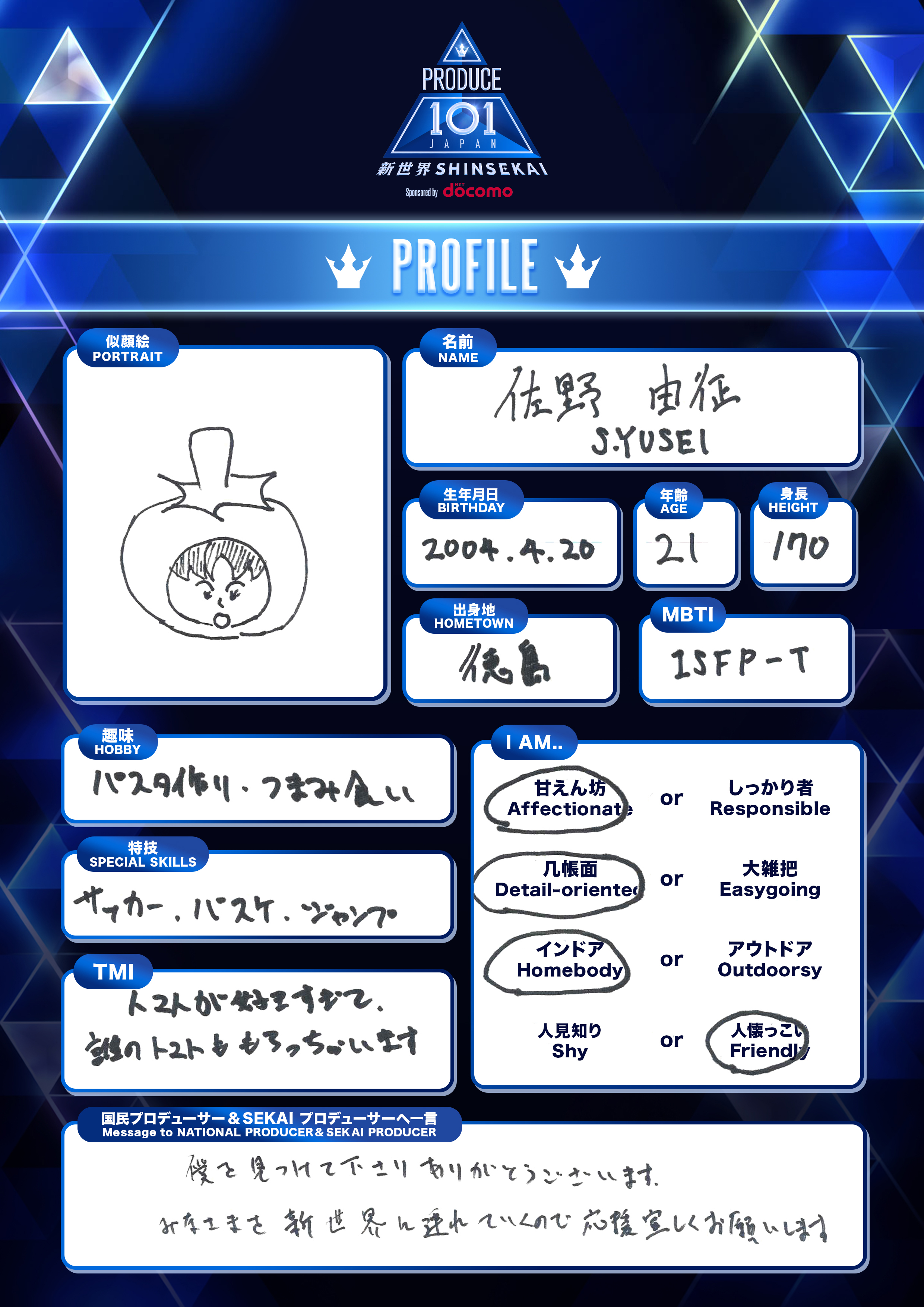手書きプロフィールノート