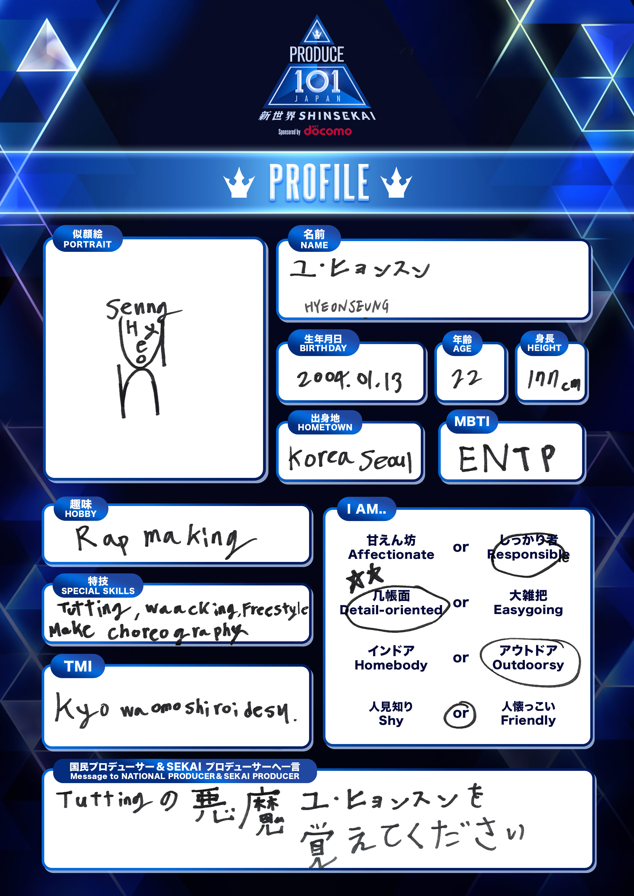 手書きプロフィールノート